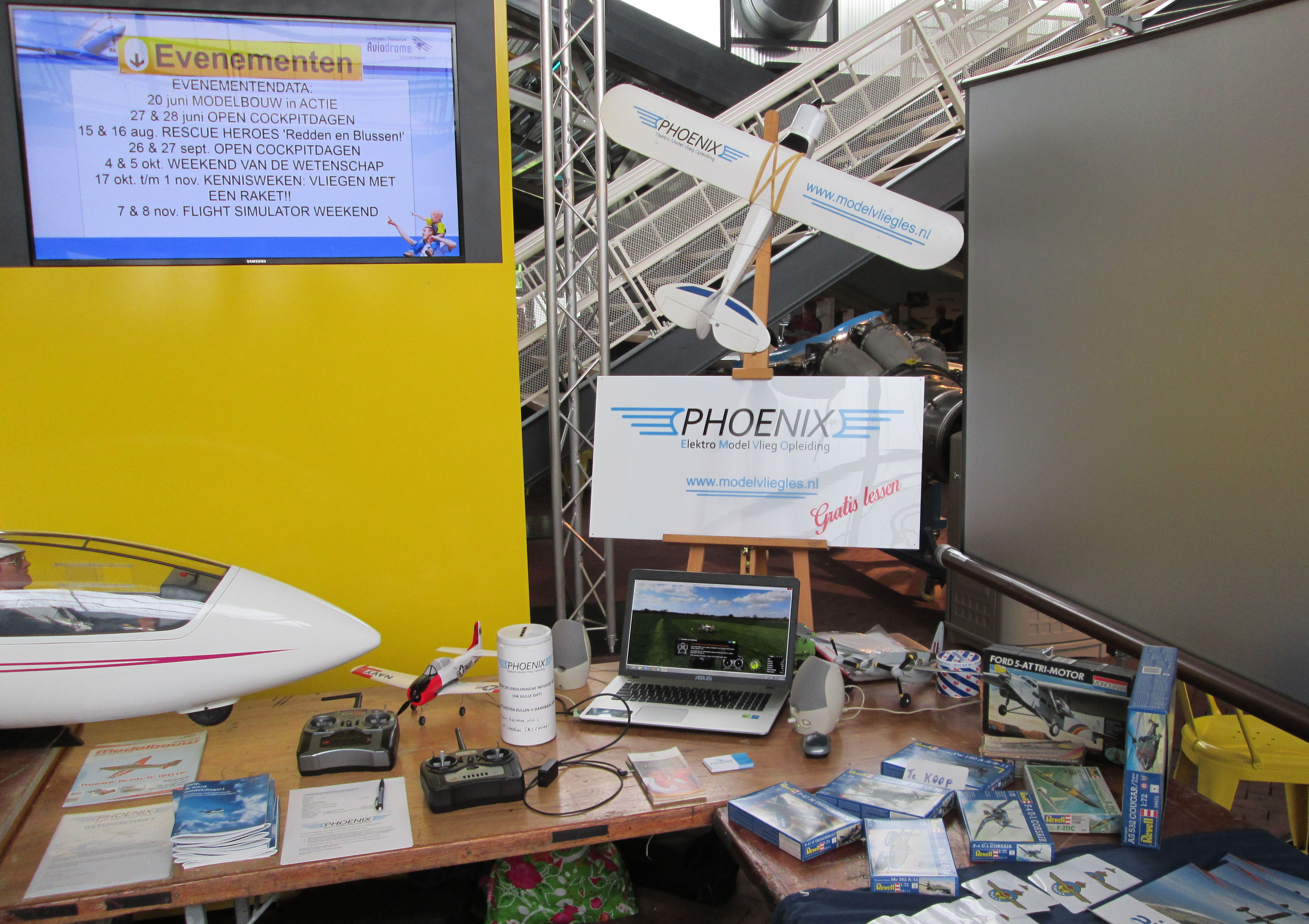 Samen met de Afdeling Modelvliegsport van de KNVvL bemanden we een stand vlak bij de ingang. De loop zat er goed in en zowel de KNVvL als EMVO Phoenix hebben veel ‘exposure’ gehad. En er kwamen ook veel vrienden (ook cursisten) en bekenden langs! De dag werd afgesloten met een mooie vliegshow van Phantasy in Blue, zeer de moeite van het nog even blijven waard… Standbemanning: Alex Janssen, Coen Pen, Bruno van Hoek, Erik Velthuizen, Richard Branderhorst en Bald de Boer. Zonder hen was de dag minder mooi geworden!