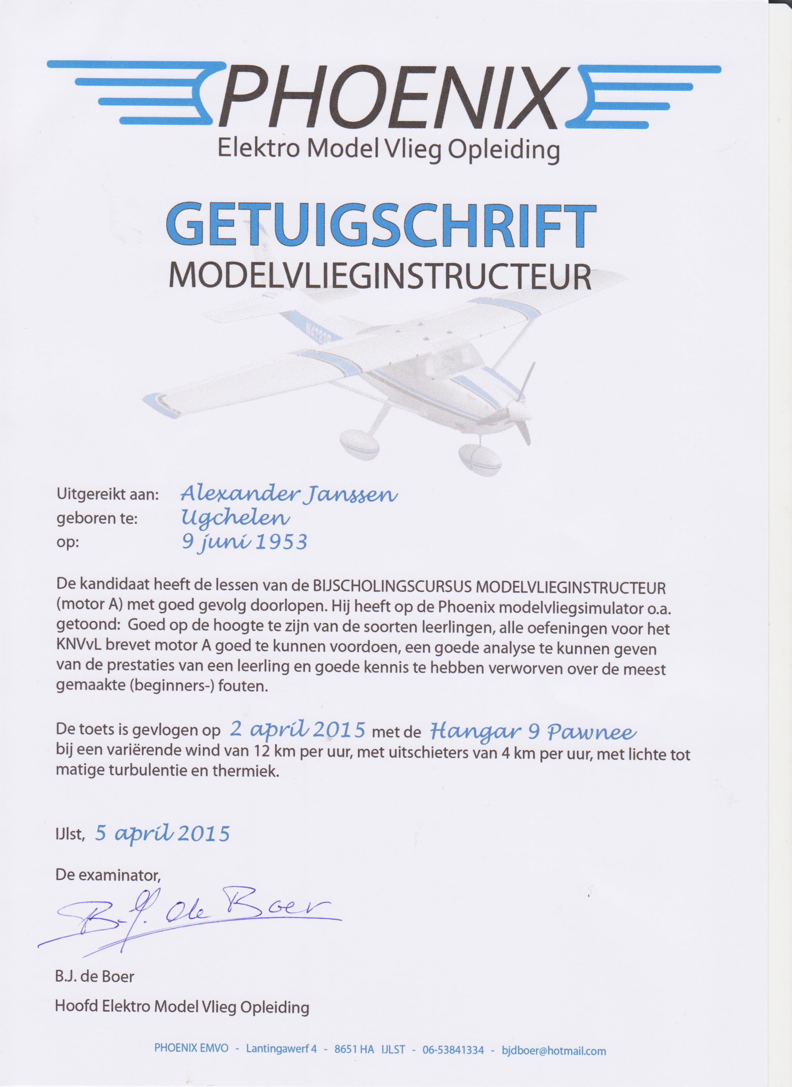 Voor zelfstandig vliegen met motormodellen in clubverband moet je in de regel een veiligheidsbrevet A Motor bezitten. Voor het behalen daarvan moet je op een club zijn. Dat kan dus ook bij onze club EMVC Romeo. Wij leiden op voor het EMVO PHOENIX brevet A Motor, conform de normen van de KNVvL. We streven er naar, dat onze kandidaten ruimschoots aan de eisen van die organisatie voldoen.