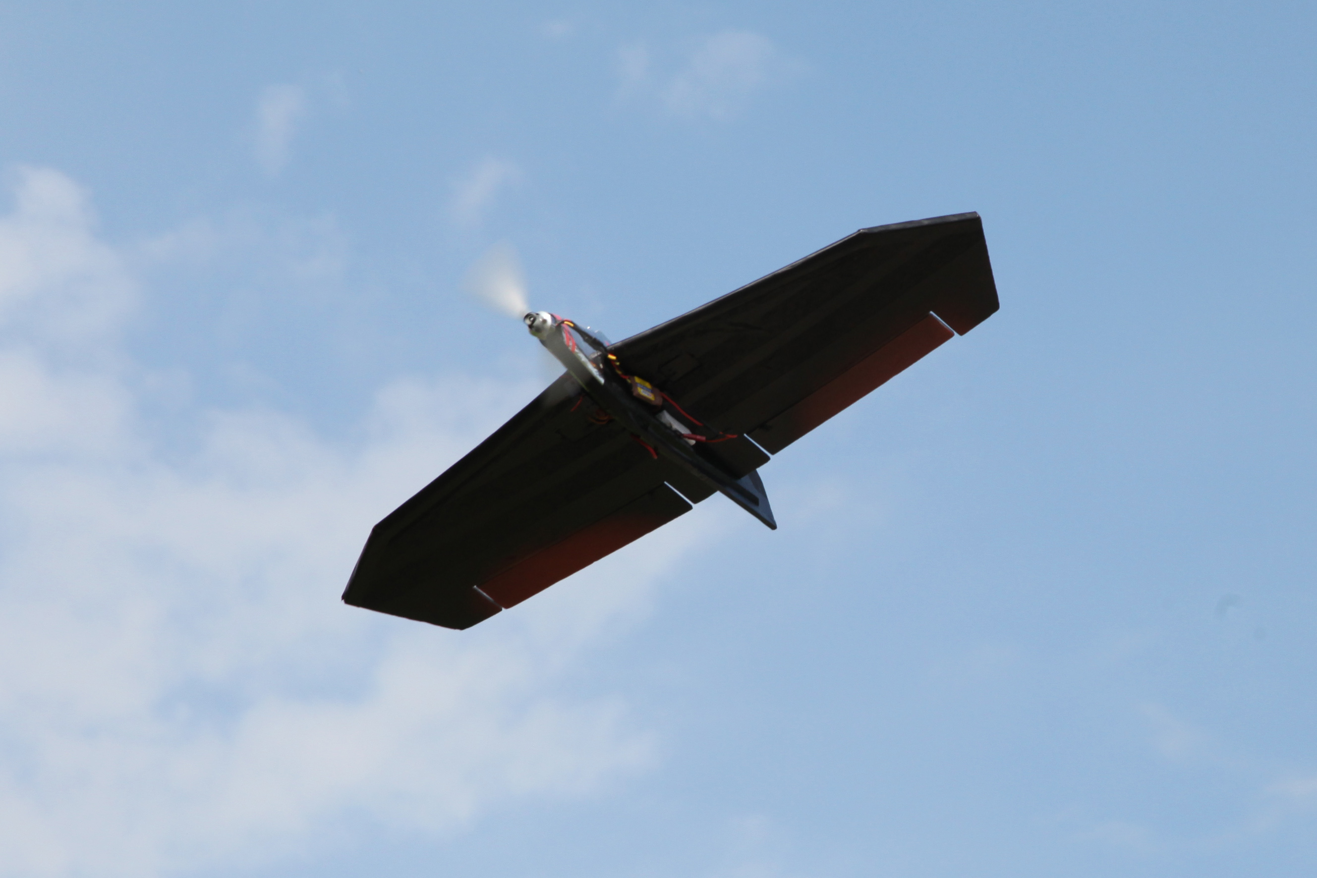 Maar laten we niet vooruitlopen. Al op 5 juni maakte ik in de regen een geslaagde testvlucht met de Phoenix en zijn nieuwe propeller. Twee dagen later wilde ik de Vitesse vanuit mijn tuin vliegen. Dat ging goed totdat ik boven het water op de kop ging vliegen. Toen liet de accu los en hij hing naar beneden te bungelen. Ik wist niet hoe snel ik de kist weer terug moest rollen en vlug in de tuin landen. Oef, dat ging net goed…