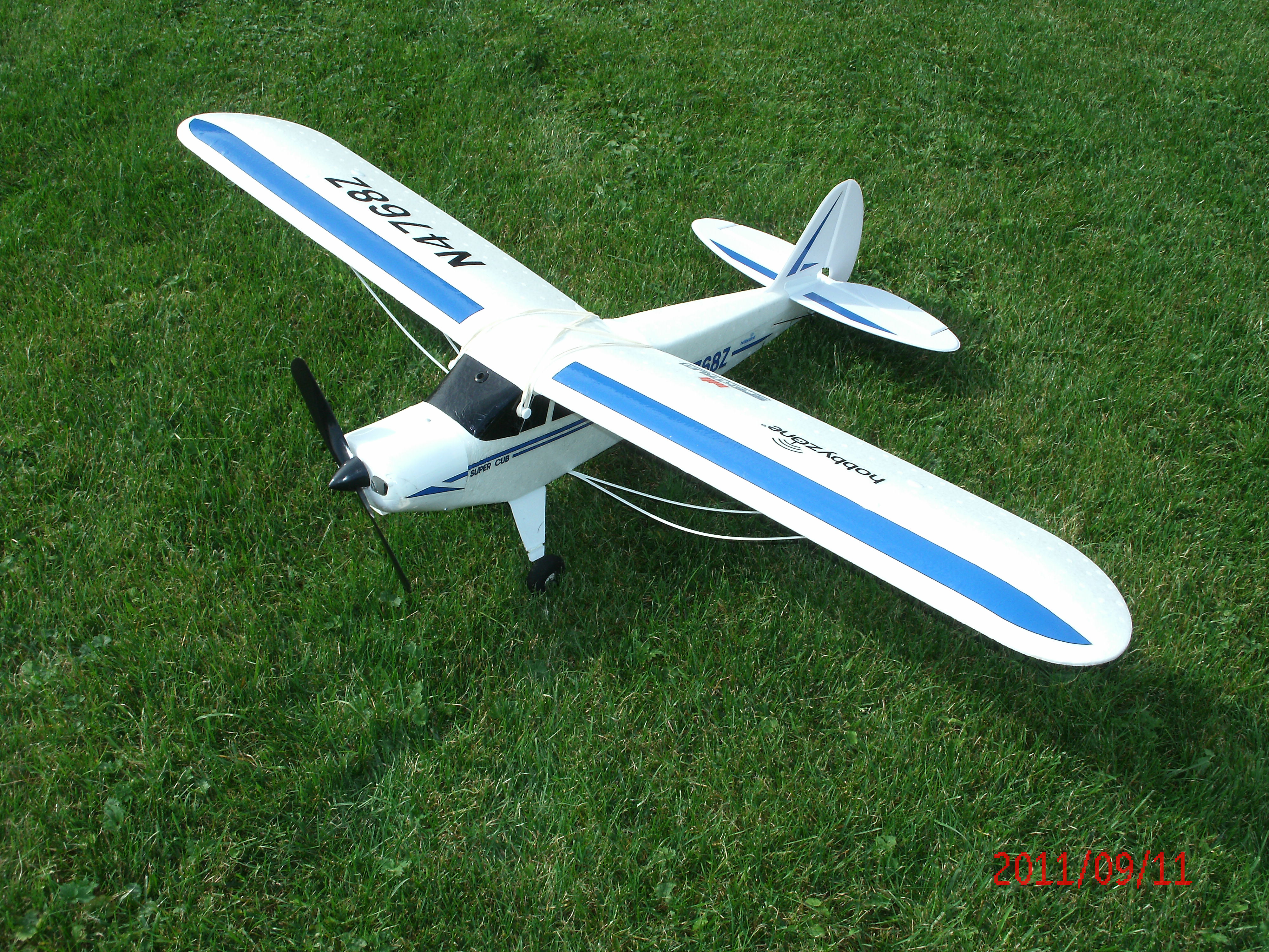 Na het avondeten gaat het hele gezelschap mee om naar de vliegkunsten van pa te kijken. Vlakbij het huisje ligt een groot open veld waar ik mooi boven kan vliegen. Ik besluit om te starten vanaf het fietspad op het park. De eerste poging mislukt: de Cub gaat links uit de flank en belandt met zijn prop in het gaas van de afrastering. Oen! Gelukkig geen schade. Een handlancering biedt uitkomst, daar gaat hij…