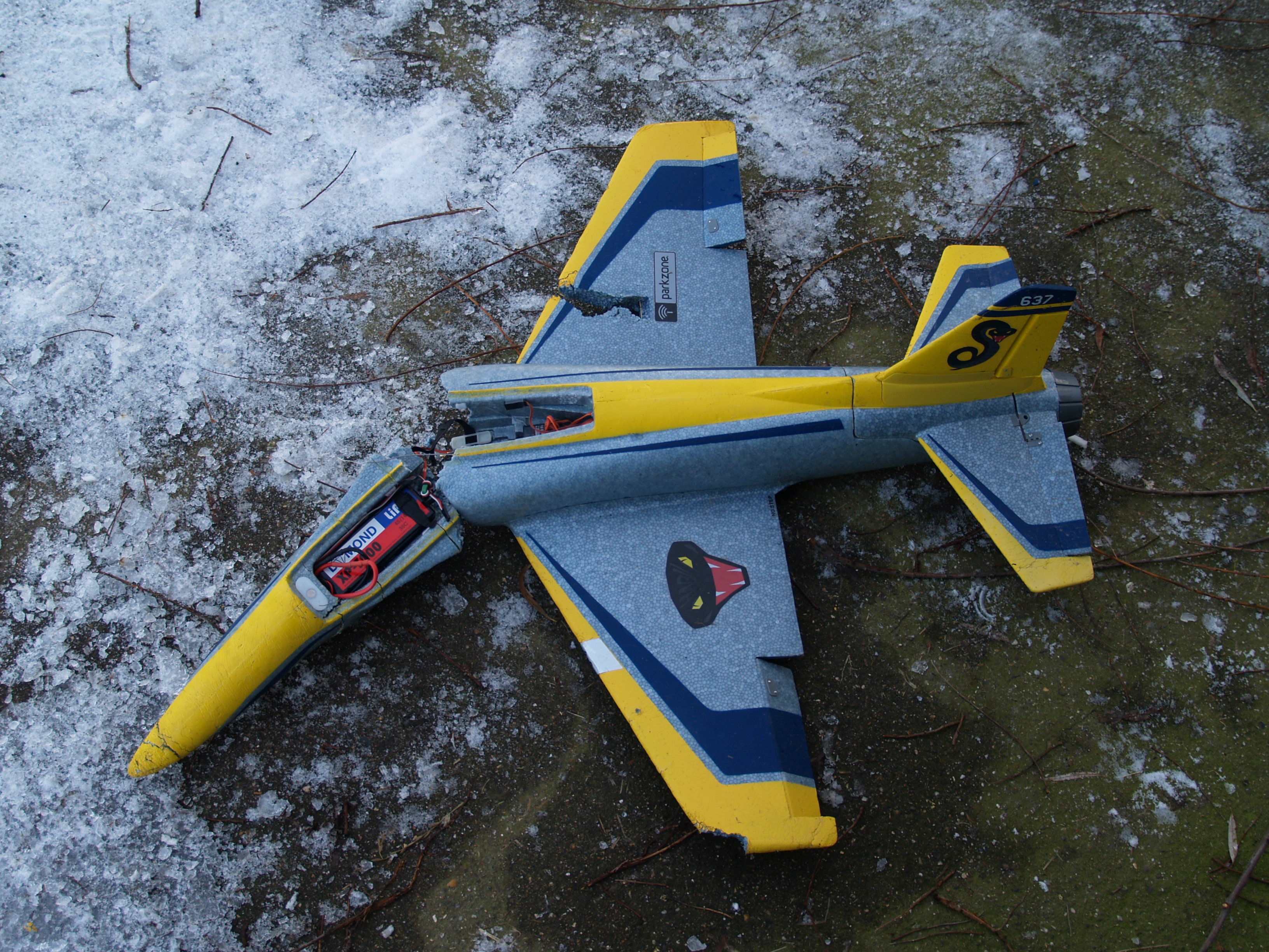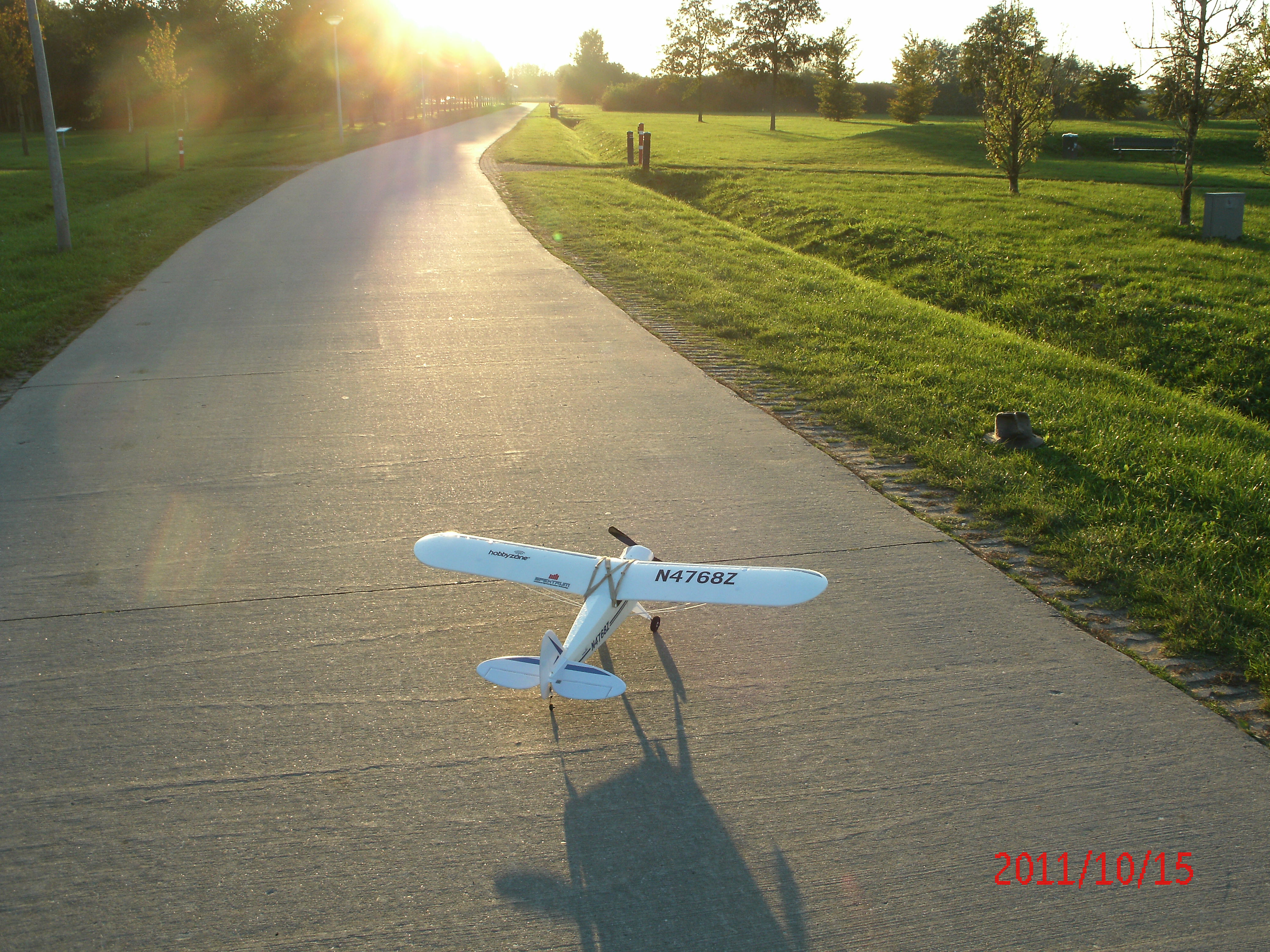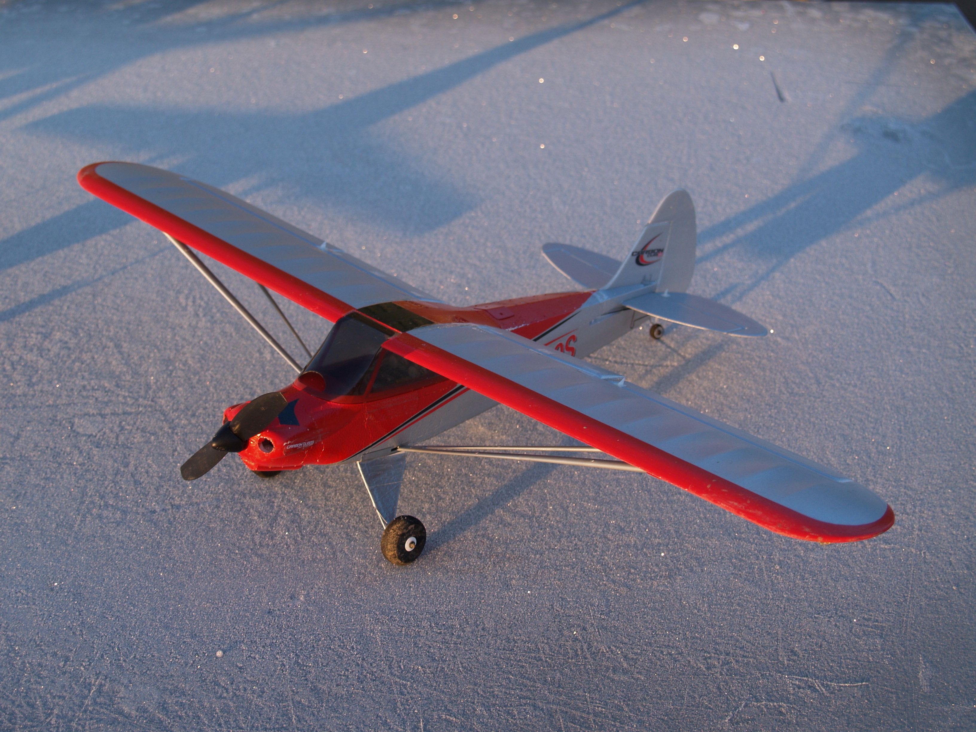 Begin december volgde nóg een bestelling uit de serie micro’s: de UMX Carbon Cub SS, die ik ook in Dortmund had gezien. Ook deze Piper Cub is mooi op schaal en heeft AS3X stabilisatie. Bovendien heeft hij als motor een buitenloper, werkende flaps en verlichting. En je kunt er drijvers onder zetten en een speciale mini ASK-21 zwever mee omhoog trekken! Daarom heeft de motor nogal wat ‘over-vermogen’. Daar kwam ik later op een harde manier achter: tijdens de eerste (hand-) start stond het vliegtuig meteen recht omhoog in de lucht. Om vervolgens te pletter te slaan. De vlucht had 13 seconden geduurd en ik zat met een gebroken vleugel. Na reparatie met Z-Poxy vloog dit toestel goed en heeft het nooit meer schade gehad …