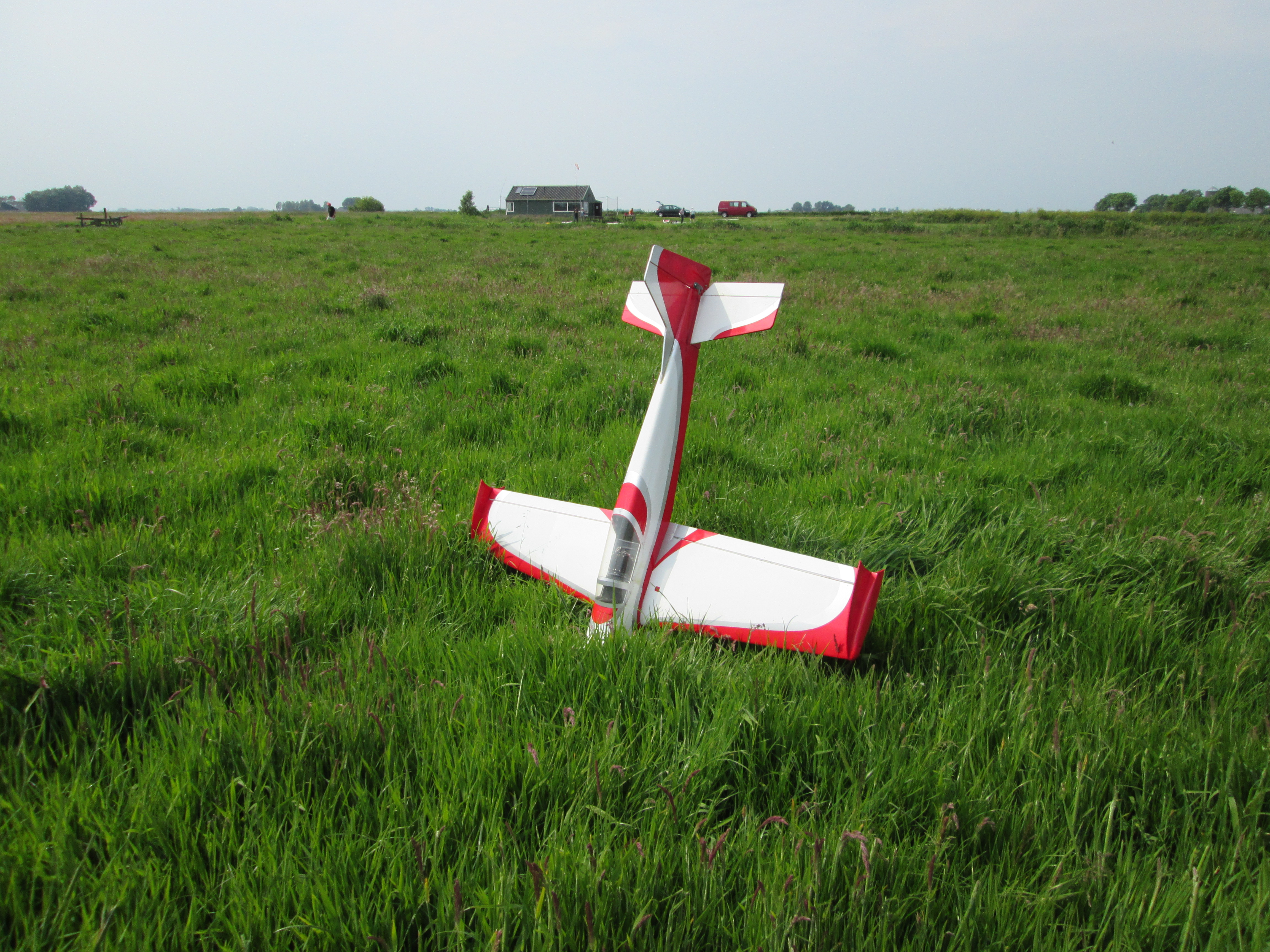Moraal van het verhaal: gebruik te allen tijde je zonnebril, vlieg niet te grote circuits en houd vooral hoogte (dingen die ik Bald al zo vaak hoorde zeggen)! Ik ga de Super Cub weer opbouwen. En ik heb al telefonisch contact met Bald gehad: hij gaat mij erbij helpen. Inmiddels heb ik zelfs al een servo en wat klein spul bij hem op kunnen halen!